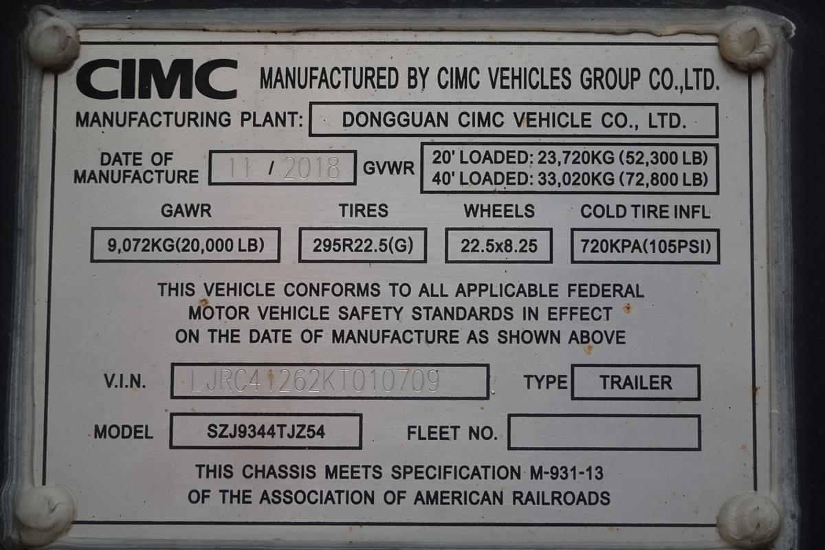 2019 CIMC SZJ9344TJZ54 Tandem Axle 20-40' Extendable Container Chassis