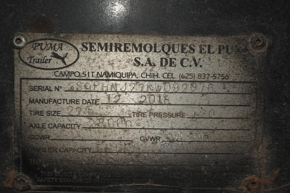 Inventory # 1105251Year: 2019 Make: Puma Model: Axles: Fixed Spread Tandem Type: Flatbed Step Deck Trailer VIN: 3S9PHNJ27KW092076 Suspension: 4 Air Bag Tires: 255/70R22.5 Rims: 10 Bolt Hub Pilot Length: 48' Width: 102" Height: 5' Deck Height: Main 41" - Front Upper 60" Weight: 12,760 lb GVWR: 68,200 lb Trailer Composition: Steel Floor Composition: Wood / Steel (Some Wood Missing Or Poor) Deck Dimensions: 11'2" Front Upper Deck, 36'10" Main Deck Added Details: 6 Ratchets / Straps Total, Has Locks To Carry Containers Price: $19,900 1YDXXTAGEJJXXTQPLKDPAABEJXRT+750+800 Terms of Sale
