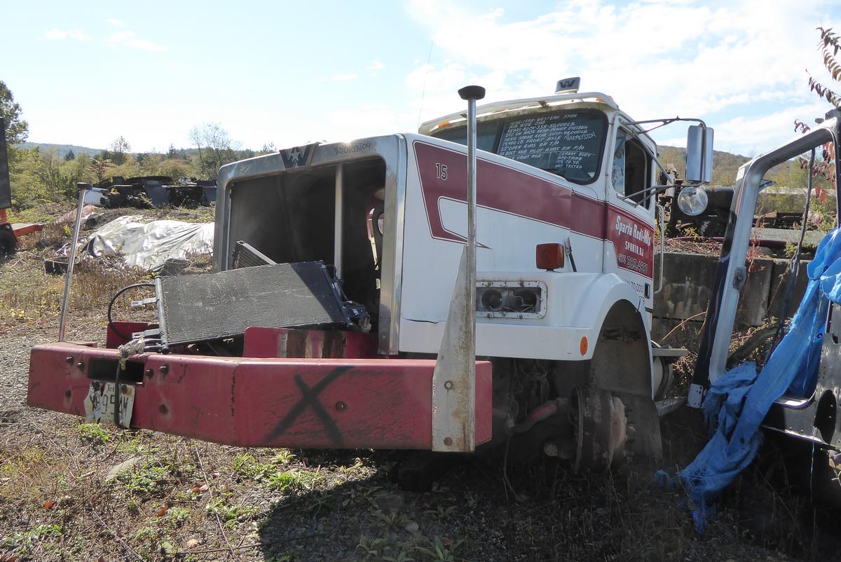 Inventory # 0803204Year: 1998 Make: Western Star Model: 4964S Type: Tandem Axle Cab Cut Motor: None Air to Air: No Engine Brake: No Transmission: None PTO: hyd pump runs off front of engine Rear: Rockwell RT50-160 50,000 lb - SOLD Ratio: 3.58 Power Divider: Yes Suspension: Hendrickson spring 48,000 lb - SOLD Tires: None Rims: None - 10 Bolt Hub Pilot F/A Length: Approx. 14' Width: Approx. 8' Height: Approx 8' Odometer Reading: 20,940 ECM: n/a Hour Meter Reading: Wheelbase: Cab to Axle: Cab to End: Weight: GVW: 62,400 lbs Mixer Details: Added Details: No Engine - No Trans - hood length approx. 66.5" - rear SOLD - body & frame SCRAPPED Price: SOLD 1YDXXTRCIJJXXTQRTVDPGEJXRT+600+500 Terms of Sale