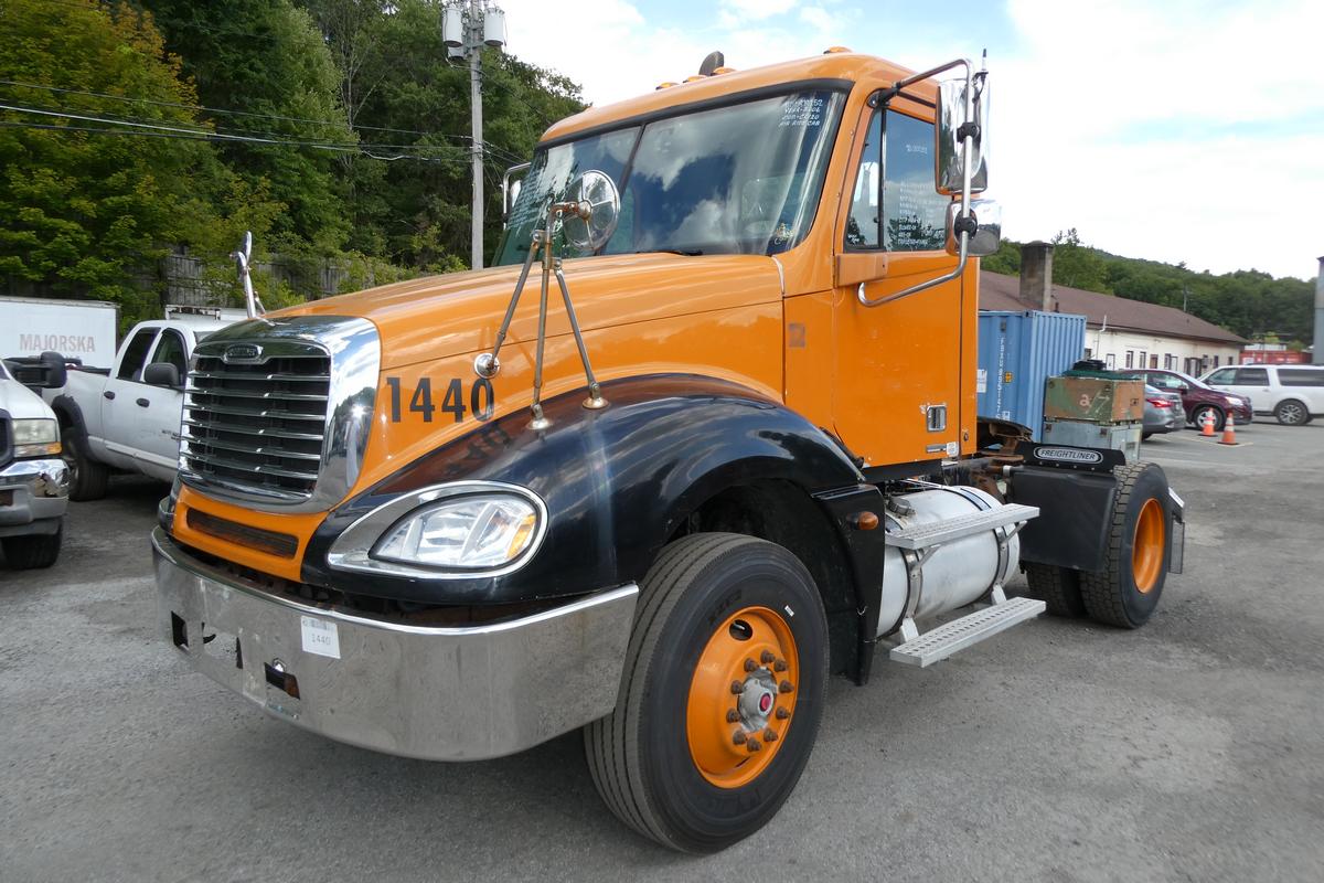 Inventory # 0828252Year: 2006 Make: Freightliner Model: Columbia 120 Type: Single Axle Day Cab Tractor VIN: 1FUBA6CG06LW19165 Motor: Detroit 12.7L Elec 380/455 HP Air to Air: Yes Air Conditioning: Yes (Works) Engine Brake: Electronic DEF: No Transmission: Fuller FRO13210C 10 Speed PTO: No Front Axle: 12,000 lb Rear: Meritor RS23-160 23,000 lb Ratio: 3.58 Power Divider: N/A Suspension: Airliner 2 Air Bag 23,000 lb (Both Bases Broken) Tires: 11R22.5 Rims: 10 Bolt Hub Pilot - Steel Odometer Reading: 563,176 ECM: 5,563* Hour Meter Reading: 284* ECM Hour Reading: Length: 19'10" Width: 8' Height: 9'9" Wheelbase: 154" Cab to Axle: 80" Cab to End: 103" Weight: 12,940 lbs GVW: 35,000 lb Added Features: Runs Well, Single Frame, Stationary 5th Wheel Price: Sold 2STXXTEIJJXXTRRQPLKDPBBEJXRT+750+500 Terms of Sale