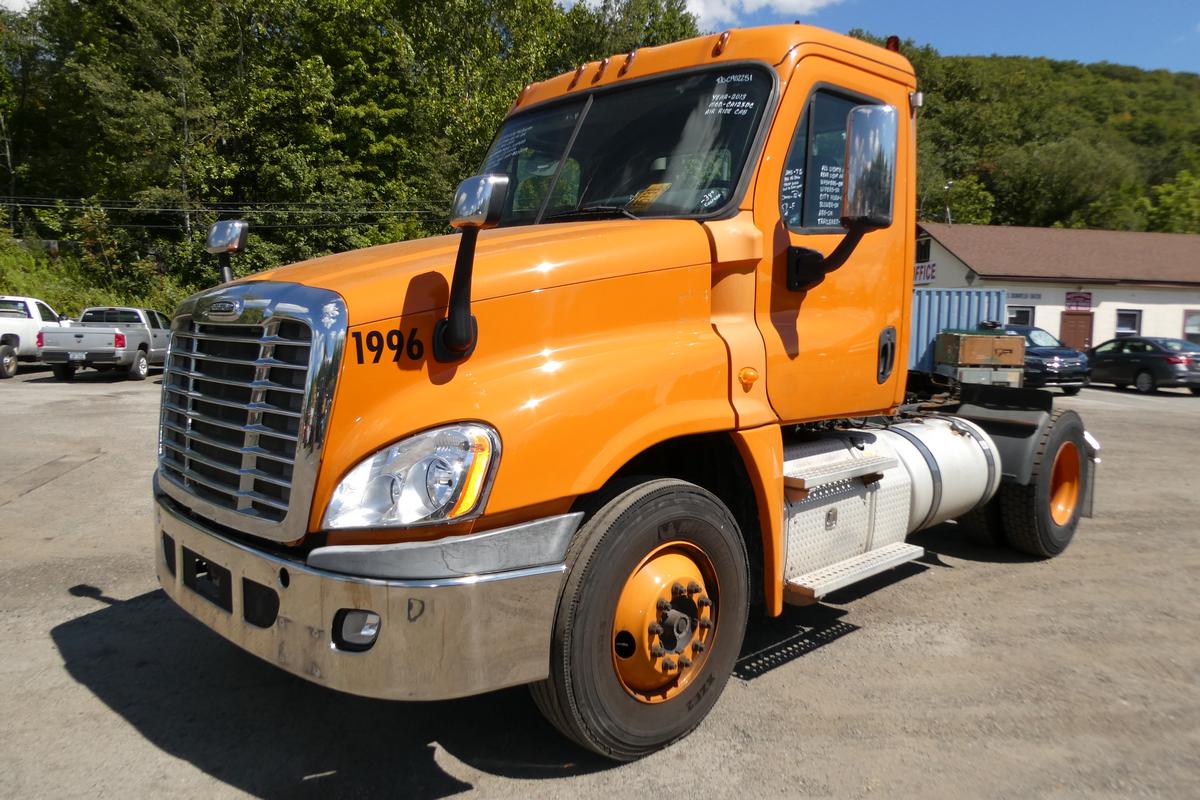Inventory # 0902251Year: 2013 Make: Freightliner Model: Cascadia 125 Type: Single Axle Day Cab Tractor VIN: 1FUBGEDVXDLFA7734 Motor: Detroit DD13 12.8L Elec 410/500 HP Air to Air: Yes Air Conditioning: Yes (Not Working) Engine Brake: Electronic DEF: Yes Transmission: Fuller FRO14210C 10 Speed PTO: No Front Axle: 12,000 lb Rear: Meritor RS23-160 23,000 lb Ratio: 3.42 Power Divider: No Suspension: Airliner 2 Air Bag 23,000 lb Tires: 11R22.5 Rims: 10 Bolt Hub Pilot - Steel Odometer Reading: 512,099 ECM: 512,094 Hour Meter Reading: 20,028 ECM Hour Reading: Length: 20'6" Width: 8' Height: 10' Wheelbase: 161" Cab to Axle: 86" Cab to End: 108" Weight: 13,940 lb GVW: 35,000 lb Added Features: Runs Well, Single Frame, Stationary 5th Wheel, Air Disc Brakes Price: Sold 2STXXTCBEJXRTZQPLKDPAGEJXRT+750+500+250 Terms of Sale