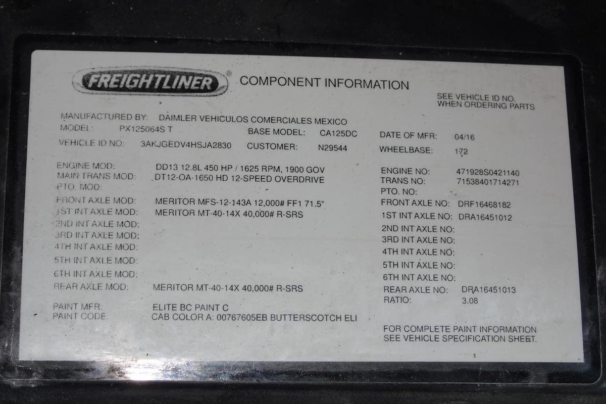![]() ![]() ![]() ![]() ![]() ![]() ![]() ![]() ![]() ![]() ![]() ![]() ![]() ![]() 2017 Freightliner Cascadia 125 Tandem Axle Day Cab Tractor![]() Year: 2017 Make: Freightliner Model: Cascadia 125 Type: Tandem Axle Day Cab Tractor VIN: 3AKJGEDV4HSJA2830 Motor: Detroit DD13 12.8L Elec 450/525 HP Air to Air: Yes Air Conditioning: Yes (Works) Engine Brake: Electronic DEF: Yes Transmission: Detroit DT12-OA-1650HD 12 Speed Automated Manual (Clutchless) PTO: No Front Axle: 12,000 lb Rear: Meritor MT40-14X 40,000 lb Ratio: 3.08 Power Divider: Yes Suspension: Airliner 4 Air Bag 40,000 lb Tires: 11R22.5 Rims: 10 Bolt Hub Pilot - Steel Odometer Reading: 772,387 ECM: 772,387 Hour Meter Reading: ECM Hour Reading: 20,771 Length: 23' Width: 8' Height w/ Fairing Down: 10'6" Wheelbase: 172" Cab to Axle: 96" Cab to End: 140" Weight: 15,940 lb GVW: 52,000 lb Added Features: Runs Well, Single Frame, Air Slide 5th Wheel, Air Disc Brakes Price: $9,900 3RVXXTGIJJXXTRQRPLKDPCBEJXRT+750+500 Terms of Sale