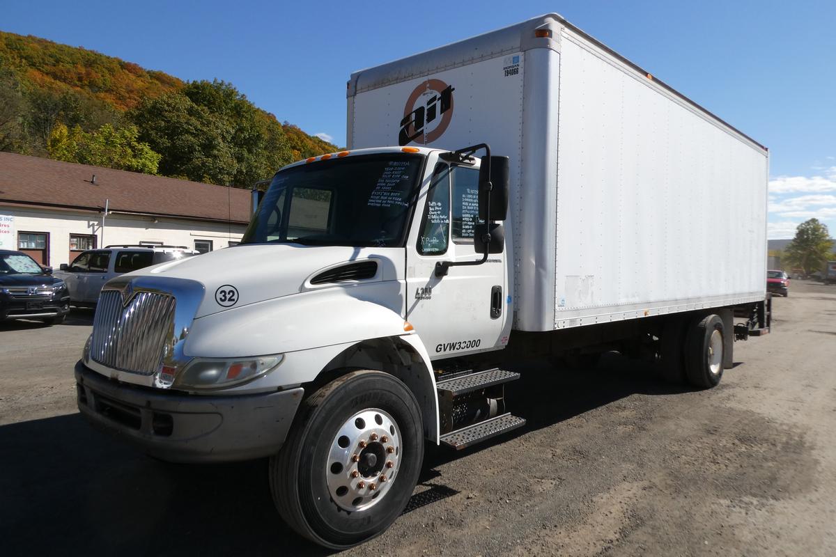 Inventory # 1007254Year: 2004 Make: International Model: 4300 Type: Single Axle Box Truck VIN: 1HTMMAAN14H676537 Motor: International DT466 Elec 215 HP Engine Brake: No DEF: No Air to Air: Yes Air Conditioning: Yes (Works) Transmission: Eaton Fuller FS5406N 6 Speed PTO: No Front Axle: 11,000 lb Rear: Eaton 21,000 lb Ratio: 4.33 Suspension: Spring 21,000 lb Tires: 11R22.5 F/A - 275/80R22.5 / 295/75R22.5 R/A Rims: 10 Bolt Hub Pilot Odometer Reading: 328,612 ECM: Hour Meter Reading: 18,100 Computer Hour Reading: Length: 34'8" Width: 8' Height: 12'3" Wheelbase: 254" Cab to Axle: 186" Cab to End: 276" Weight: 15,900 lb GVW: 32,000 lb Box Details: 8' Wide x 24'6" Long Morgan Box Body, Roll Up Door (7'4" W x 7'7" T, Steel Surround), Pass Side Swing Door (Poor 3'4" W x 6'6" T), Wood/Steel Floor, Aluminum Roof Liftgate Details: Maxon GPT-3, 3,000 lb Capacity, Aluminum Deck, Steel Frame, Works Well, No Leaks Added Details: Runs Well, Single Frame, Air Brakes, Exhaust Needs Repair Price: Sold 2STXXTFIJJXXTRQPLKDPDADJXRT+750+700+400 Terms of Sale
