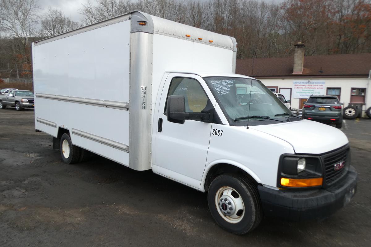 Inventory # 1112251Year: 2013 Make: GMC Model: G33903 Type: Single Axle Box Truck VIN: 1GD374CG6D1185000 Motor: GM 6.0L V8 Gas Elec 324 HP Engine Brake: No Air to Air: No DEF: No Air Conditioning: Yes (Works) Transmission: GM GL90 6 Speed Automatic PTO: No Front Axle: 4,300 lb Rear: GM 8,600 lb Ratio: Suspension: Spring 8,600 lb Tires: LT225/75R16 Rims: 8 Lug Odometer Reading: 179,021 ECM: Hour Meter Reading: 4,424 Computer Hour Reading: Length: 25'1" Width: 8' Height: 9'10" Wheelbase: 177" Cab to Axle: 119" Cab to End: 200" Weight: 7,620 lb GVW: 12,300 lb Box Details: 8' Wide x 17' Long Morgan Box Body - Roll Up Door (7'4" W x 6' T), Steel Surround, Wood Floor, Translucent Roof Added Details: Runs Well, 2WD, Single Frame, Hydraulic Disc Brakes, 2' Aluminum Ram, Tow Ball Price: $5,900 3RVXXTDEJJXXTRQPLKDPAJJJXRT+750+500+1000 Terms of Sale