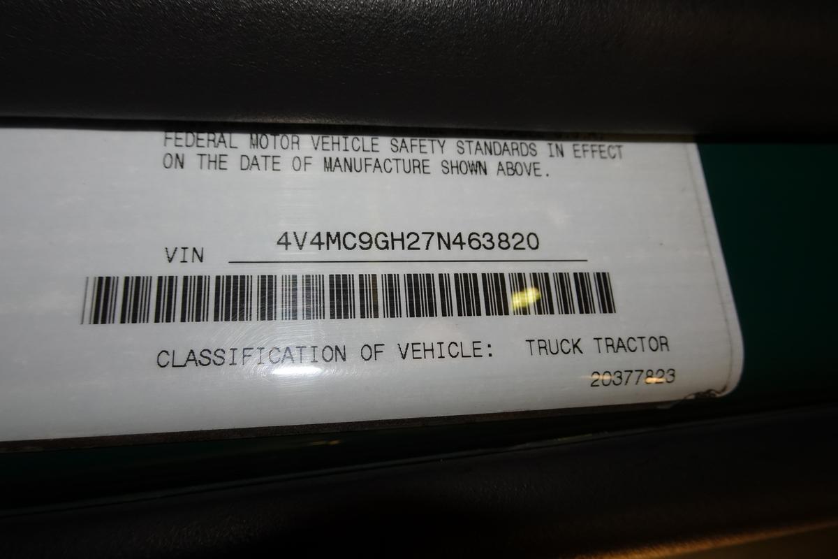 Inventory # 1219251Year: 2007 Make: Volvo Model: VNM64T Type: Tandem Axle Day Cab Tractor VIN: 4V4MC9GH27N463820 Motor: Volvo VED12 12.1L Elec 435 HP - Engine Light On Air to Air: Yes Air Conditioning Yes (Not Working) Engine Brake: Electronic DEF: No Transmission: Fuller FRO16210C 10 Speed PTO: 2x Air Operated, One Bottom Mount Married Type, One Passenger Side Shaft Type Front Axle: 12,500 lb Rear: Meritor MT40-14X 40,000 lb Ratio: 3.73 Power Divider: Yes Suspension: Volvo 4 Air Bag 40,000 lb Tires: 11R22.5 Rims: 10 Bolt Hub Pilot - Aluminum Odometer Reading: 656,749 ECM Reading: Hour Meter Reading: 21,207 ECM Hour Reading: Length: 24'2" Width: 8' Height: 9'10" Wheelbase: 183" Cab to Axle: 121" Cab to End: 168" Weight: 14,860 lb GVW: 52,500 lb Added Details: Runs Well - Engine Light On, Single Frame, Air Slide 5th Wheel, Cab Air Ride Not Working Price: $2,900 as is as described NNY 2STXXTBBJJXXTRQPLKDPAJJJXRT+750 Terms of Sale