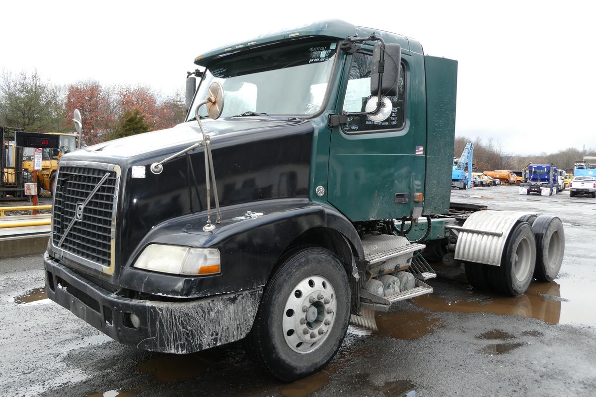 Inventory # 1219251Year: 2007 Make: Volvo Model: VNM64T Type: Tandem Axle Day Cab Tractor VIN: 4V4MC9GH27N463820 Motor: Volvo VED12 12.1L Elec 435 HP - Engine Light On Air to Air: Yes Air Conditioning Yes (Not Working) Engine Brake: Electronic DEF: No Transmission: Fuller FRO16210C 10 Speed PTO: 2x Air Operated, One Bottom Mount Married Type, One Passenger Side Shaft Type Front Axle: 12,500 lb Rear: Meritor MT40-14X 40,000 lb Ratio: 3.73 Power Divider: Yes Suspension: Volvo 4 Air Bag 40,000 lb Tires: 11R22.5 Rims: 10 Bolt Hub Pilot - Aluminum Odometer Reading: 656,749 ECM Reading: Hour Meter Reading: 21,207 ECM Hour Reading: Length: 24'2" Width: 8' Height: 9'10" Wheelbase: 183" Cab to Axle: 121" Cab to End: 168" Weight: 14,860 lb GVW: 52,500 lb Added Details: Runs Well - Engine Light On, Single Frame, Air Slide 5th Wheel, Cab Air Ride Not Working Price: Sold 2STXXTBBJJXXTRQPLKDPAJJJXRT+750 Terms of Sale