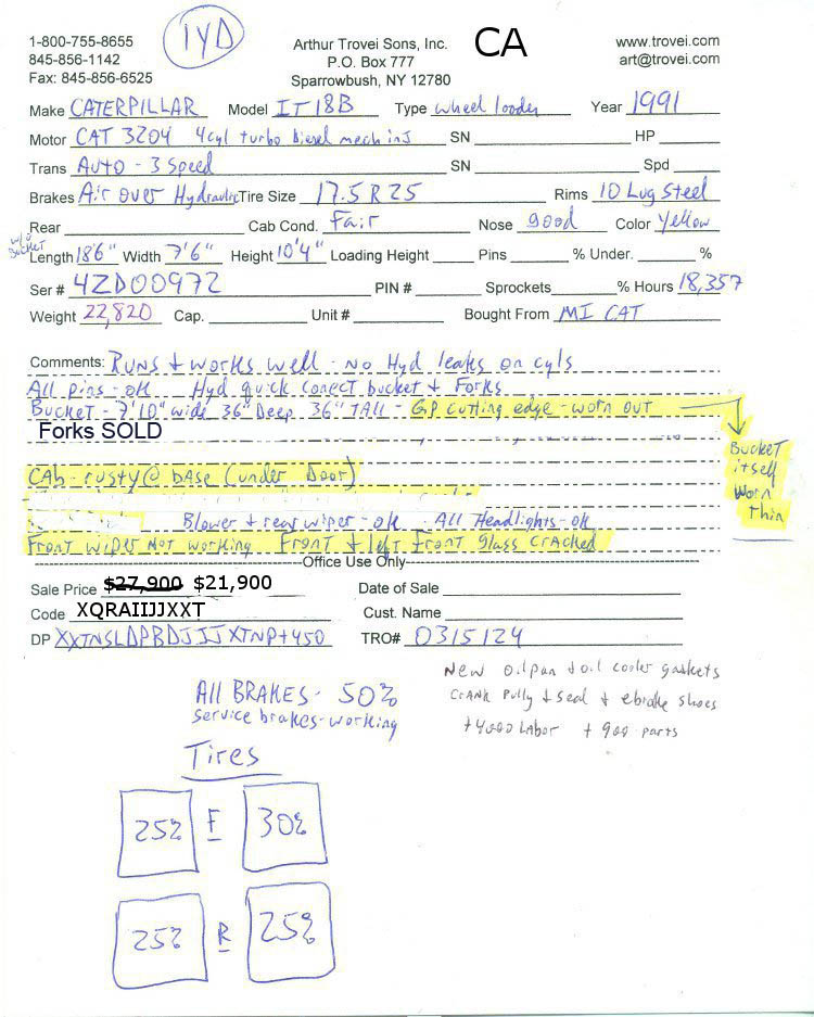 1991 Caterpillar IT18B Tire Loader Inventory # 0315124