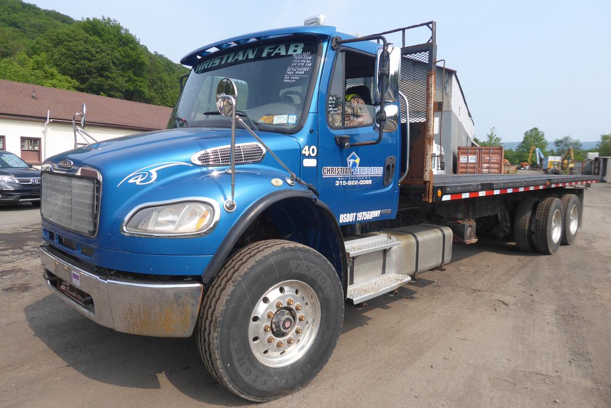 Inventory # 0613251Year: 2008 Make: Freightliner Model: M2-106 Type: Tandem Axle Flatbed Truck VIN: 1FVHCYBS08HAB1720 Motor: Cummins ISC 8.3L Elec 330 HP Wetline: No Air to Air: Yes Air Conditioning: Yes (Not Working) Transmission: Fuller FRO12210C 10 speed PTO: No Front Axle: 18,000 lb Rear: Meritor RT40-145P w/ Full Lockers 40,000 lb Ratio: 4.11 Suspension: Airliner 4 Air Bag 40,000 lb Tires: 315/80R22.5 F/A 10R22.5 T/A Rims: 10 Bolt Hub Pilot Odometer Reading: 231,572 ECM: 231,504 Hour Meter Reading: ECM Hour Reading: 7,709 Length: 35'8" Width: 102" Height: 9'8" Wheelbase: 284" Cab to Axle: 218" Cab to End: 320" Weight: 22,140 lb GVW: 58,000 lb Body Details: 102" x 26' Flatbed Body, Trex Floor, 7 Ratchets and 8 Straps, 5' Steel Headboard, 54" Deck Height Added Details: Runs Well, Double Frame, Air Brakes, Can Carry Forklift On Back Price: Sold 2STXXTRRAFIJJXXTQPLKDPABJDJXRT+750+1300 Print This Page | Back to Flatbed Truck Inventory | Ask A Question Terms of Sale