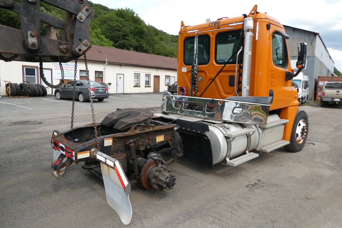 Inventory # 0617242Year: 2013 Make: Freightliner Model: Cascadia 125 Type: Single Axle Day Cab Tractor VIN: 1FUBGEDV3DLFA7719 Motor: Detroit DD13 12.8L elec 410/500 hp - DOES NOT RUN CORE LOCKED Air to Air: Yes Air Conditioning: Yes (Not Tested) Engine Brake: Electronic DEF: Yes Transmission: Fuller FRO14210C 10 speed PTO: No Front Axle: 12,000 lb Rear: Meritor RS23-160 23,000 lb Ratio: 3.42 Power Divider: n/a Suspension: Airliner 2 air bag 23,000 lb Tires: 11R22.5 Rims: 10 bolt hub pilot - steel Odometer Reading: Unavailable ECM: Hour Meter Reading: ECM Hour Reading: Length: 20'6" Width: 8' Height: 10' Wheelbase: 161" Cab to Axle: 86" Cab to End: 108" Weight: 14,840 lbs GVW: 35,000 lbs Added Features: DOES NOT RUN CORE LOCKED, single frame, stationary 5th wheel, air disc brakes - hood SOLD Price: $5,900 as is as described NNY 1YDXXTDEJJXXTRQRTVDPBJJJXRT+750+600 Terms of Sale