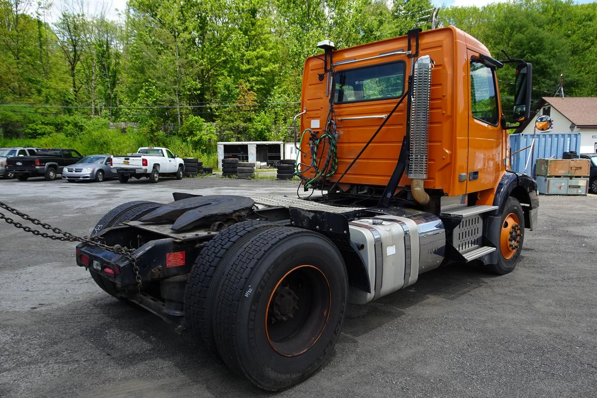 Inventory # 0708242Year: 2012 Make: Volvo Model: VNM42T Type: Single Axle Day Cab Tractor VIN: 4V4M19DG8CN548284 Motor: Volvo D11 10.8L elec 385 hp - DOES NOT RUN CORE TURNS BAD CAM Air to Air: Yes Air Conditioning: Yes (Not Tested) Engine Brake: Electronic DEF: Yes Transmission: Fuller FRO14210C 10 speed PTO: No Front Axle: 12,000 lb Rear: Meritor MS23-16 23,000 lb Ratio: 3.42 Power Divider: No Suspension: Volvo 2 air bag 20,000 lb Tires: 11R22.5 Rims: 10 bolt hub pilot - steel Odometer Reading: 598,622 ECM: Hour Meter Reading: ECM Hour Reading: Length: 19'9" Width: 8' Height: 10' Wheelbase: 154" Cab to Axle: 90" Cab to End: 115" Weight: 14,080 lbs GVW: 32,000 lbs Added Features: DOES NOT RUN CORE TURNS BAD CAM, single frame, stationary 5th wheel, air disc brakes, NO HEADLIGHT ASSEMBLIES, AIR TANKS SOLD Price: $4,900 as is as described NNY 1YDXXTCIJJXXTRQRTVDPAEJJXRT+750+500 Terms of Sale