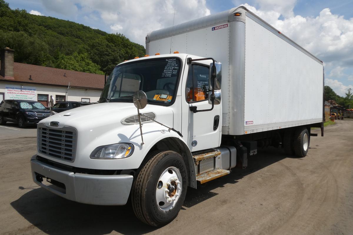 Inventory # 0715254Year: 2015 Make: Freightliner Model: M2-106 Type: Single Axle Box Truck VIN: 3ALACXDT7FDGU2957 Motor: Cummins 6.7L Elec 280 HP Engine Brake: No DEF: Yes Air to Air: Yes Air Conditioning: Yes (Works) Transmission: Allison 2500HS Automatic PTO: No Front Axle: 12,000 lb Rear: Detroit RS21.0-4 21,000 lb Ratio: 5.88 Suspension: 2 air bag 21,000 lbs Tires: 295/75R22.5 Rims: 10 Bolt Hub Pilot Odometer Reading: 222,566 ECM: 222,566 Hour Meter Reading: Computer Hour Reading: 10,266 Length: 35'7" Width: 102" Height: 11'9" Wheelbase: 270" Cab to Axle: 204" Cab to End: 296" Weight: 17,920 lbs GVW: 33,000 lbs Box Details: 102" Wide x 24'6" Long Morgan Box Body, Roll Up Door (7'10" W x 7' T, Steel Surround), Wood / Steel Floor, Translucent Roof Tailgate Details: Maxon RCW-5 Hydraulic Railift - 5,000 lb Capacity - Steel Frame / Deck - Not Fully Working (Fold Works, Lift Not Working) Added Details: Runs Well, Single Frame, Air Brakes Price: Sold 3RVXXTHIJJXXTQPLKDPDGIJXRT+750+1500 Terms of Sale
