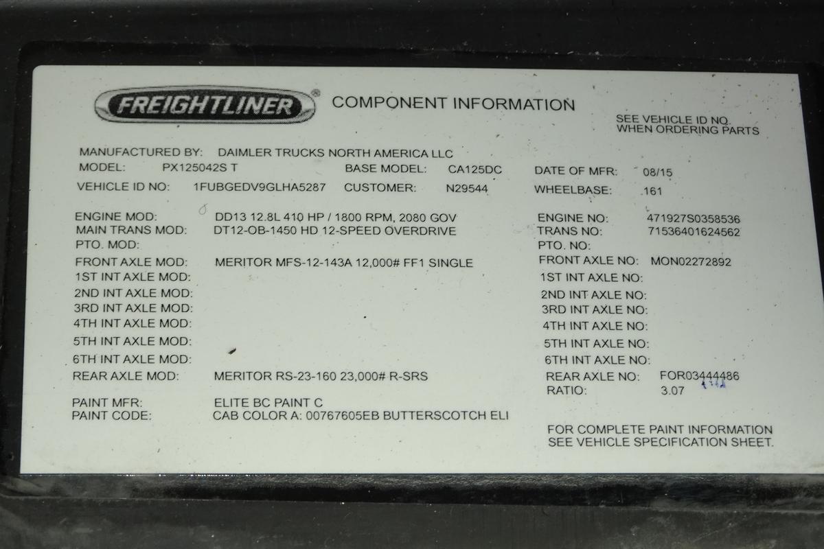 ![]() ![]() ![]() ![]() ![]() ![]() ![]() ![]() ![]() ![]() ![]() ![]() ![]() ![]() 2016 Freightliner Cascadia 125 Single Axle Day Cab Tractor![]() Year: 2016 Make: Freightliner Model: Cascadia 125 Type: Single Axle Day Cab Tractor VIN: 1FUBGEDV9GLHA5287 Motor: Detroit DD13 12.8L Elec 410/500 HP Air to Air: Yes Air Conditioning: Yes (Works) Engine Brake: Electronic DEF: Yes Transmission: Detroit DT12-0B-1450HD Clutchless 12 Speed Automated Manual PTO: No Front Axle: 12,000 lb Rear: Meritor RS23-160 23,000 lb Ratio: 3.07 Power Divider: No Suspension: Airliner 2 Air Bag 23,000 lb Tires: 11R22.5 Rims: 10 Bolt Hub Pilot - Steel Odometer Reading: 517,913 ECM: 191,145 Hour Meter Reading: 19,957 ECM Hour Reading: Length: 20'3" Width: 8' Height: 10'6" Wheelbase: 161" Cab to Axle: 86" Cab to End: 108" Weight: 13,420 lb GVW: 35,000 lb Added Features: Runs Well, Single Frame, Stationary 5th Wheel, Air Disc Brakes Price: $5,900 as described NNY 2STXXTCIJJXXTRTQPLKDPABEJXRT+750+500 Terms of Sale
