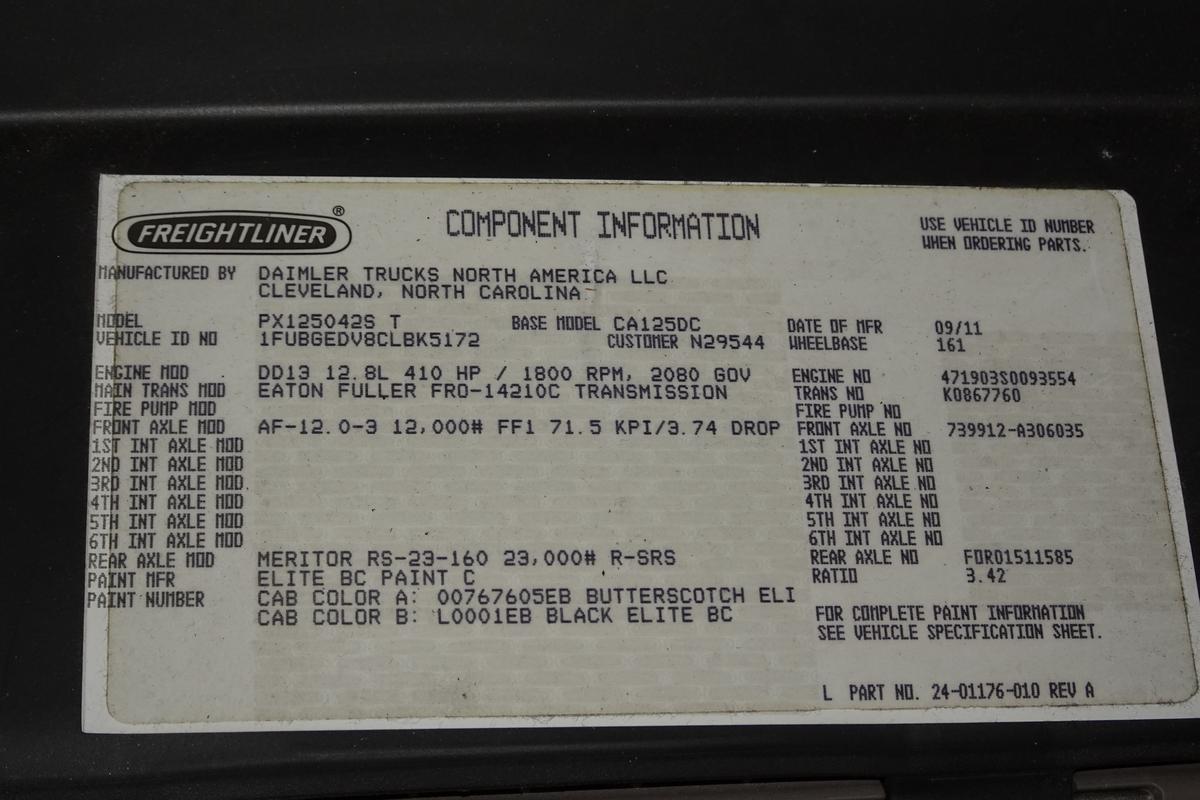 Inventory # 1002252Year: 2012 Make: Freightliner Model: Cascadia 125 Type: Single Axle Day Cab Tractor VIN: 1FUBGEDV8CLBK5172 Motor: Detroit DD13 12.8L Elec 410/500 HP Air to Air: Yes Air Conditioning: Yes (Works) Engine Brake: Electronic DEF: Yes Transmission: Fuller FRO14210C 10 Speed PTO: No Front Axle: 12,000 lb Rear: Meritor RS23-160 23,000 lb Ratio: 3.42 Power Divider: No Suspension: Airliner 2 Air Bag 23,000 lb Tires: 11R22.5 Rims: 10 Bolt Hub Pilot - Steel Odometer Reading: 511,057 ECM: 511,060 Hour Meter Reading: 23,435 ECM Hour Reading: Length: 20'6" Width: 8' Height: 10' Wheelbase: 161" Cab to Axle: 86" Cab to End: 108" Weight: 14,080 lb GVW: 35,000 lb Added Features: Runs Well, Single Frame, Stationary 5th Wheel, Air Disc Brakes Price: $5,900 3RVXXTDCJJXXTRQPLKDPBBEJXRT+750+500 Terms of Sale