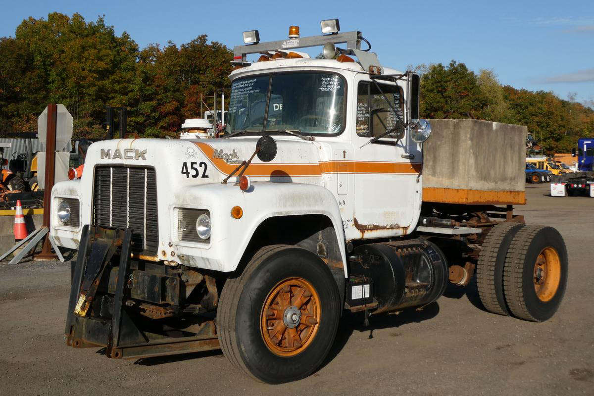Inventory # 1010254Year: 1985 Make: Mack Model: R690T Type: Single Axle Day Cab Tractor VIN: 1M2N267X5FA002203 Motor: Mack EM6 4 Valve Mech 275 HP Air to Air: Yes Air Conditioning: No Engine Brake: No DEF: No Transmission: Mack T2050 5 Speed PTO: N/A Front Axle: 12,000 lb Rear: Mack Front Load 23,000 lb Ratio: 5.78 Power Divider: No Suspension: Spring 23,000 lb Tires: 11R22.5 Rims: 20" Open Odometer Reading: 28,861 ECM Reading: Hour Meter Reading: 9,544 (4 Digit) ECM Hour Reading: Length: 18'10" Width: 8' Height: 9'6" Wheelbase: 151" Cab to Axle: 72" Cab to End: 105" Weight: 20,260 lb (Concrete Counterweight) GVW: 35,000 lb Added Details: Runs Well, Single Frame, Stationary 5th Wheel Price: SOLD 2STXXTEIJJXXTRQPLKDPAGEJXRT+750+500+500 Terms of Sale