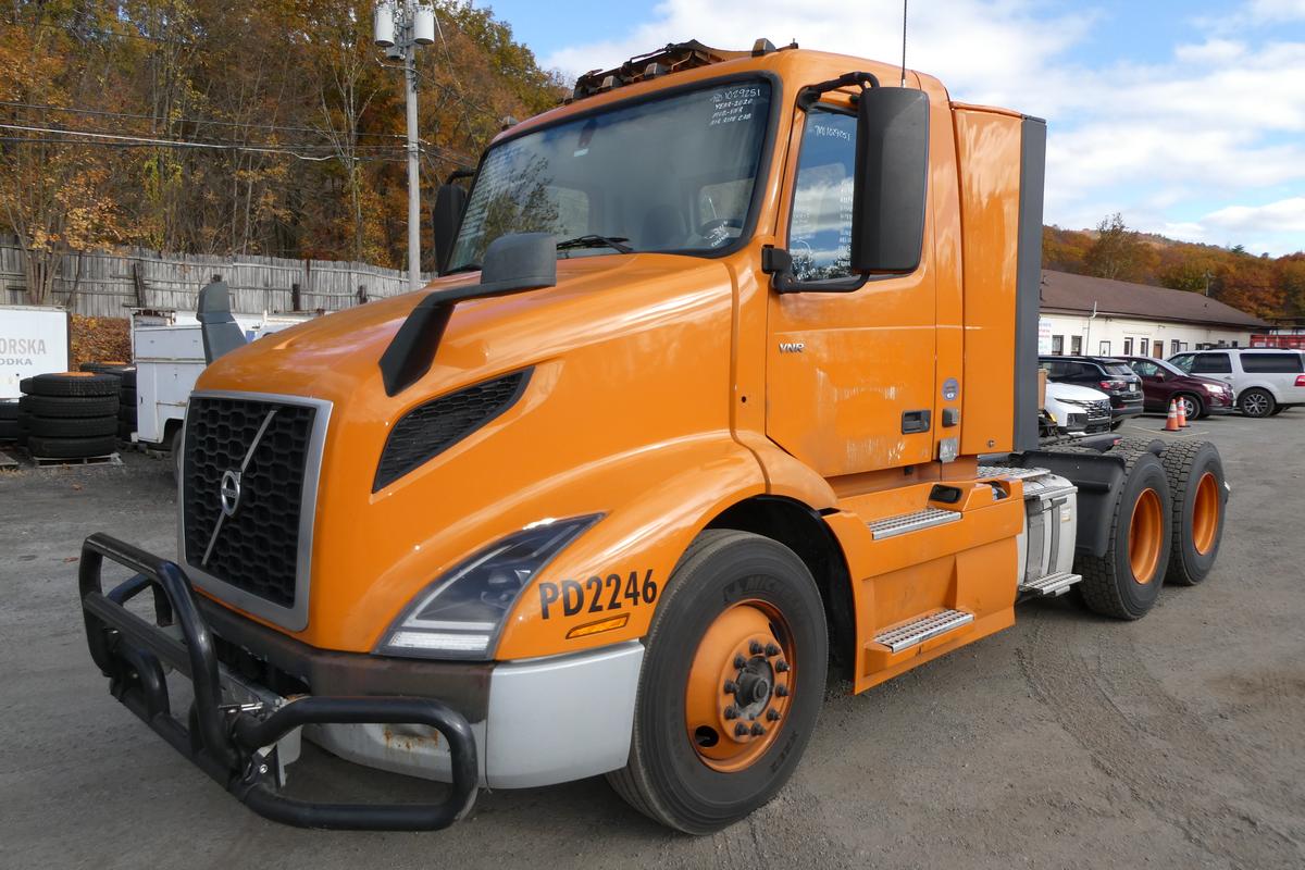 Inventory # 1029251Year: 2020 Make: Volvo Model: VNR64T300 Type: Tandem Axle Day Cab Tractor VIN: 4V4WC9EG7LN244137 Motor: Volvo D13 12.8L Elec 405 hp Air to Air: Yes Air Conditioning Yes (Works) Engine Brake: Electronic DEF: Yes Transmission: Volvo AT2612F IShift (Clutchless) 12 Speed Automated Manual PTO: n/a Front Axle: 12,350 LB Rear: Meritor MT40-14X 40,000 LB Ratio: 2.47 Power Divider: Yes Suspension: Volvo 4 Air Bag 40,000 LB Tires: 11R22.5 Rims: 10 Bolt Hub Pilot - Steel Odometer Reading: 835,444 ECM Reading: Hour Meter Reading: 18,874 ECM Hour Reading: Length: 23'10" Width: 8' Height: 9'8" Wheelbase: 174" Cab to Axle: 110" Cab to End: 156" Weight: 16,480 lb GVW: 52,350 lb Added Details: Runs Well, Single Frame, Air Slide 5th Wheel, Air Disc Brakes, Pusher Bar Price: Sold 3RVXXTGIJJXXTRQPLKDPAGEJXRT+750+500 Terms of Sale