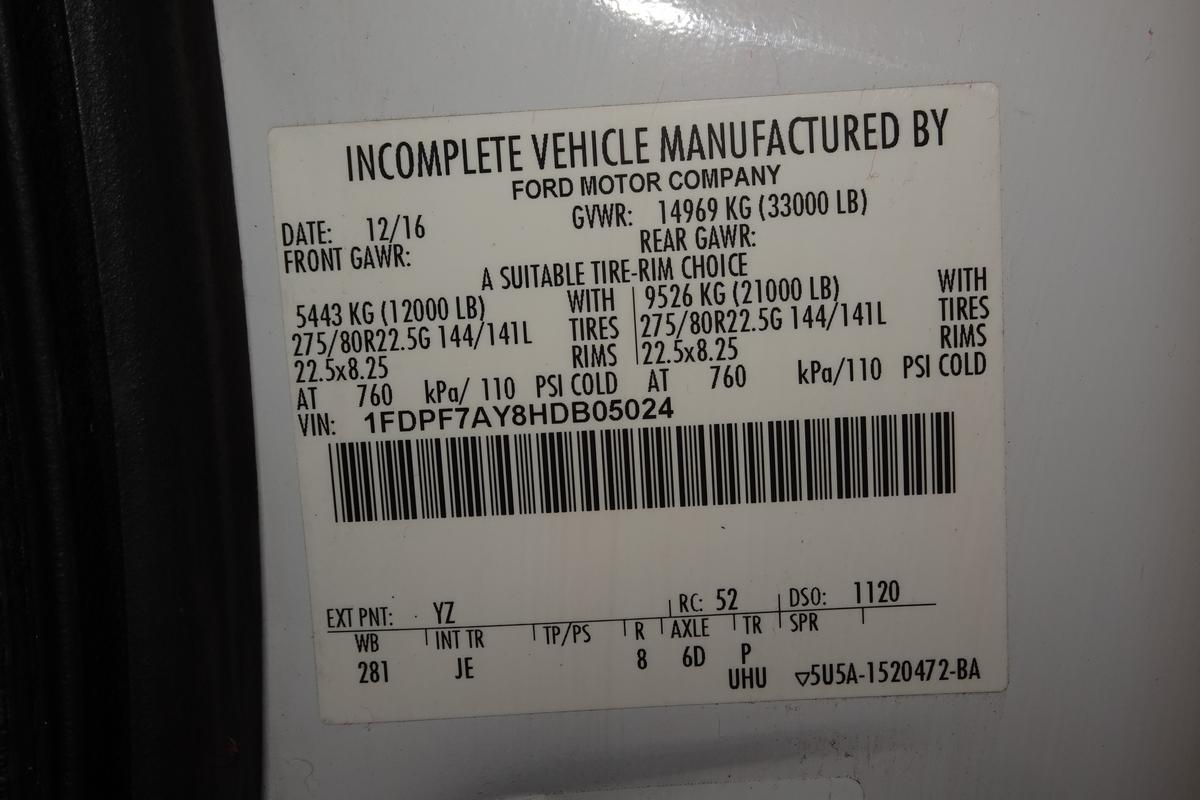 Inventory # 1030251Year: 2017 Make: Ford Model: F750 Type: Single Axle Beverage Truck VIN: 1FDPF7AY8HDB05024 Motor: Ford V10 6.8L Elec 320 HP - Propane Engine Brake: No Air to Air: No Air Conditioning: Yes (Works) Transmission: Ford 6R140 6 Speed Automatic PTO: No Front Axle: 12,000 lb Rear: Dana Spicer 21060S 21,000 lb Ratio: 6.507 Suspension: Spring 21,000 lbs Tires: 275/80R22.5 / 295/75R22.5 Rims: 10 Bolt Hub Pilot Odometer Reading: 105,642 ECM: Hour Meter Reading: 11,204 Comp Hour Reading: Length: 33'9" Width: 8' Height: 10'2" Wheelbase: 281" Cab to Axle: 187" Cab to End: 275" Weight: 14,780 lb GVW: 33,000 lb Box Details: 8' Wide x 22'8" Long Mickey A0-A Aluminum Body - 10 Bays (5 Per Side), Non-Insulated, Bays are: 1x 2'6" W x 6'10" T x 3'4" D | 1x 5'9" W x 4'9" T x 3'4" D | 3x 4'4" W x 6'10" T x 3'4" D Added Details: Runs Well, Drop Center Frame, Hydraulic Disc Brakes, Runs On Propane, 360 Cameras, Electonic Locking Mechanisms On Body Price: $9,900 NNY 3RVXXTGIJJXXTRQPLKDPCIFEXRT+750+1500 Terms of Sale