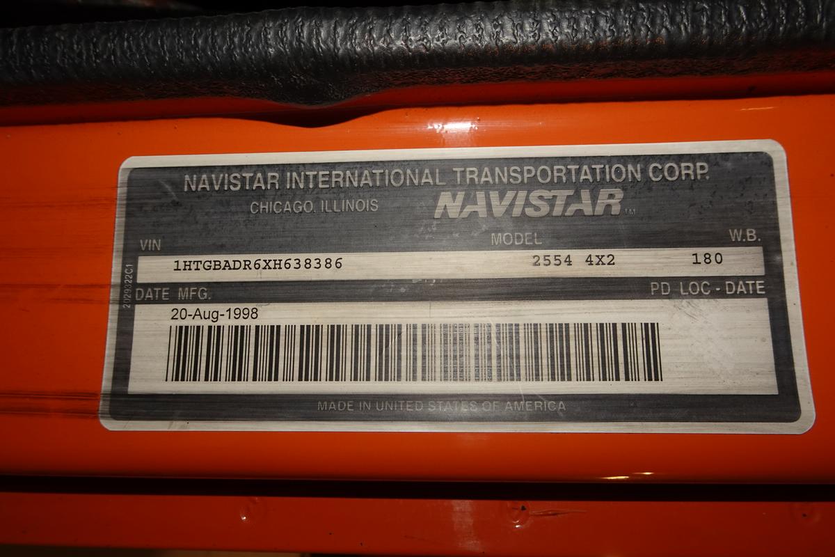 Inventory # 1105253Year: 1999 Make: International Model: 2554 Type: Single Axle Hook Lift Truck Type: 1HTGBADR6XH638386 Motor: International DT530 Elec 300 HP Wetline: Hydraulics For Hook Lift Body / Plow Air to Air: Yes Air Conditioning: No Engine Brake: No Transmission: Allison MD3060 5 Speed Automatic PTO: Electric Over Hydraulic Drivers Side With Married Hydraulic Pump Front Axle: 14,500 lb Rear: Meritor RS30-185 w/ DTC 30,000 lb Ratio: 6.14 Power Divider: No Suspension: Spring 23,000 lb Tires: 12R22.5 Rims: 20" Open F/A 10 Bolt Hub Pilot R/A Odometer Reading: 39,018* ECM Mileage Reading: Hour Meter Reading: 4,008* Computer Hour Reading: Length: 24'4" Width: 8'6" Height: 10'7" (Dump Box On) Wheelbase: 180" Cab to Axle: 100" Cab to End: 142" Weight: 22,240 lb GVW: 37,500 lb Dump Body: 8' W x 10' L Steel Dump Body, 26" Steel Sides, Lever Operated Tailgate, Electric Tarper (Not Working) Sander Body: 7' W x 10' L x 4'6" T Stainless Sander Body, Hydraulic Operated, Prior Owner States Works, 55" Hook Height Added Details: Runs Well, Double Frame, Air Brakes, Front Plow Cylinder, 11' Steel Edge Wing Plow, 1 Multi Stage Cylinder - Works, Dry Price: $13,900 NNY 3RVXXTAAIJJXXTRQPLKDPFAFJXRT+750+800+450 Terms of Sale