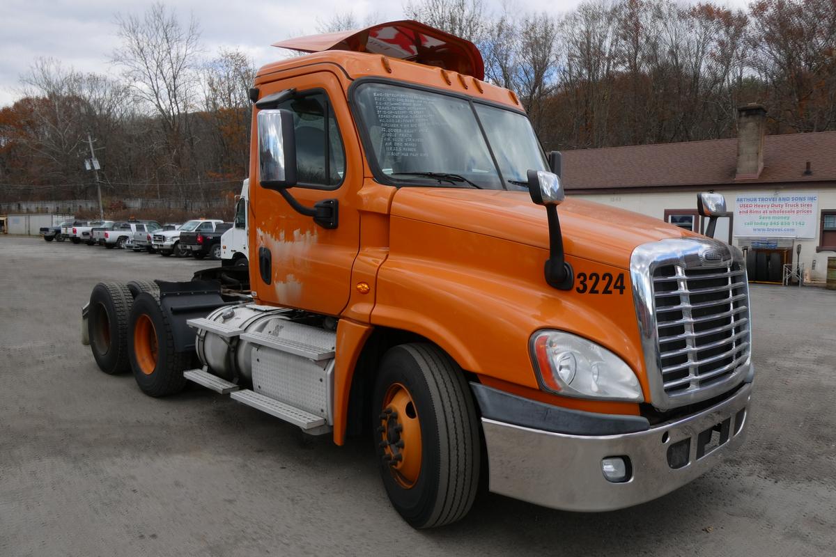 Inventory # 1106242Year: 2016 Make: Freightliner Model: Cascadia 125 Type: Tandem Axle Day Cab Tractor VIN: 1FUJGEDV3GLHA5328 Motor: Detroit DD13 12.8L elec 450/500 hp Air to Air: Yes Air Conditioning: Yes (Works) Engine Brake: Electronic DEF: Yes Transmission: Detroit DT12-OA-1650HD 12 speed automated manual (clutchless) PTO: No Front Axle: 12,000 lb Rear: Meritor MT40-14X 40,000 lb Ratio: 3.08 Power Divider: Yes Suspension: Airliner 4 air bag 40,000 lb Tires: 11R22.5 Rims: 10 bolt hub pilot - steel Odometer Reading: 748,924 ECM: 748,924 Hour Meter Reading: ECM Hour Reading: 20,167 Length: 23' Width: 8' Height w/ fairing folded: 10'6" Wheelbase: 172" Cab to Axle: 98" Cab to End: 138" Weight: 15,920 lbs GVW: 52,000 lbs Added Features: Runs Well - Engine Light On, single frame, air slide 5th wheel, air disc brakes Price: 3RVXXTGIJJXXTRQRTVDPEJJJXRT+750+300 Terms of Sale