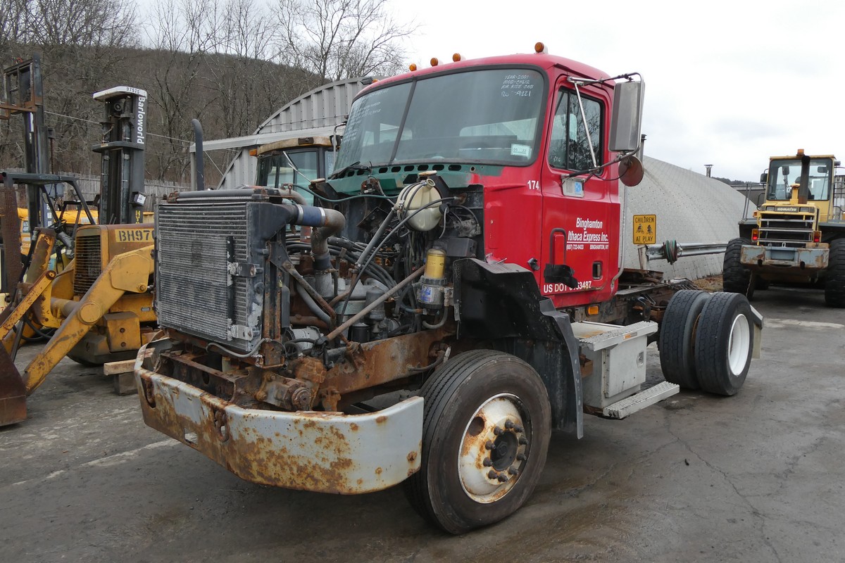 Inventory # 1109221Year: 2001 Make: Mack Model: CH612 Type: Single Axle Day Cab Tractor VIN: 1M2AA07Y81W022738 Motor: Air to Air: Yes Air Conditioning: Yes (Not Tested) Engine Brake: No Transmission: Fuller RTX14607B 7 speed - Saved OR5 PTO: n/a Rear: Rockwell 23,000 lbs Ratio: 3.91 Power Divider: No Suspension: Reyco Spring 22,70 lbs Tires: 22.5LP Rims: 10 bolt hub pilot Length: 19'7" Width: 8' Height: 9'8" Odometer Reading: Unavailable ECM Reading: Hour Meter Reading: ECM Hour Reading: Wheelbase: 144" Cab to Axle: 80" Cab to End: 108" Weight: 11,820 lbs GVW: 34,700 lbs Added Details: CORE TURNS - DOES NOT RUN, single frame, stationary 5th wheel - DRIVER SIDE WIPER ASSEMBLY MISSING - hood SOLD, Engine SOLD, Trans Saved in OR5, Cab Saved, Frame Junked, Rear Saved Price: Parted 1YDXXTECJJXXTRQRTVDPBJJJXXTR+750 Terms of Sale