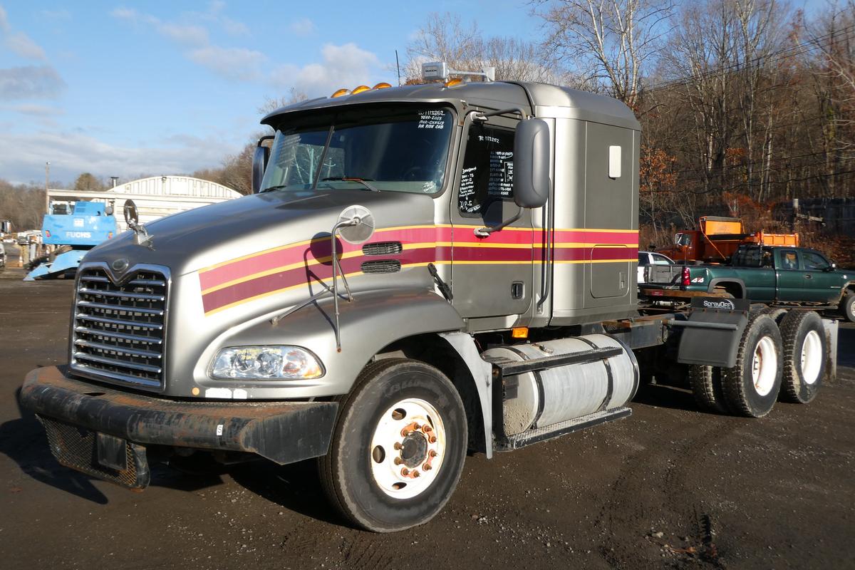 Inventory # 1113252Year: 2005 Make: Mack Model: CXN613 Type: Tandem Axle Sleeper Cab Tractor VIN: 1M1AK06Y35N003755 Motor: Mack AC Elec 427 HP Air to Air: Yes Air Conditioning: Yes (Works) Engine Brake: Electronic DEF: No Transmission: Fuller FRO15210B 10 Speed PTO: Air Operated Bottom Mount With Married Hydraulic Pump Wetline: Yes - For Lowboy / Walking Floor Front Axle: 12,000 lb Rear: Meritor RT40-145 40,000 lb Ratio: 3.73 Power Divider: Yes Suspension: Mack 4 Air Bag 40,000 lb Tires: 11R22.5 Rims: 10 Bolt Hub Pilot Odometer Reading: 745,362 ECM: Hour Meter Reading: 23,874 Computer Hour Reading: Length: 28'6" Width: 8' Height: 10' Wheelbase: 222" Cab to Axle: 118" Cab to End: 164" Weight: 18,560 lb GVW: 52,000 lb Sleeper Details: Air Ride 40" Flat Top Sleeper Added Details: Runs Well, Double and Partial Triple Frame, Air Slide 5th Wheel Price: Sold 3RVXXTGIJJXXTRQPLKDPDDEJXRT+750+975+100+400 Terms of Sale